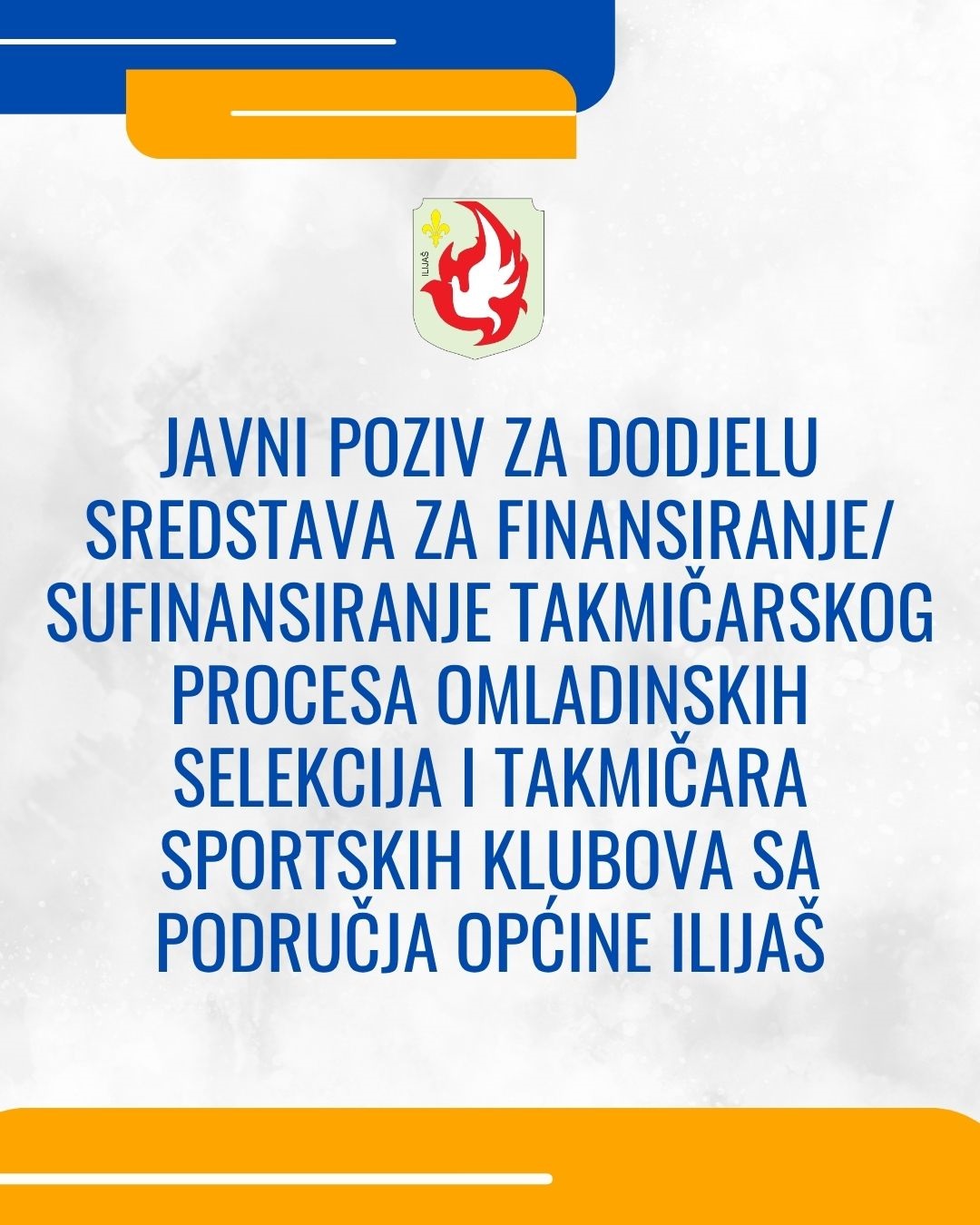 Javni poziv za dodjelu sredstava za finansiranje/sufinansiranje takmičarskog procesa omladinskih selekcija i takmičara sportskih klubova sa područja općine Ilijaš