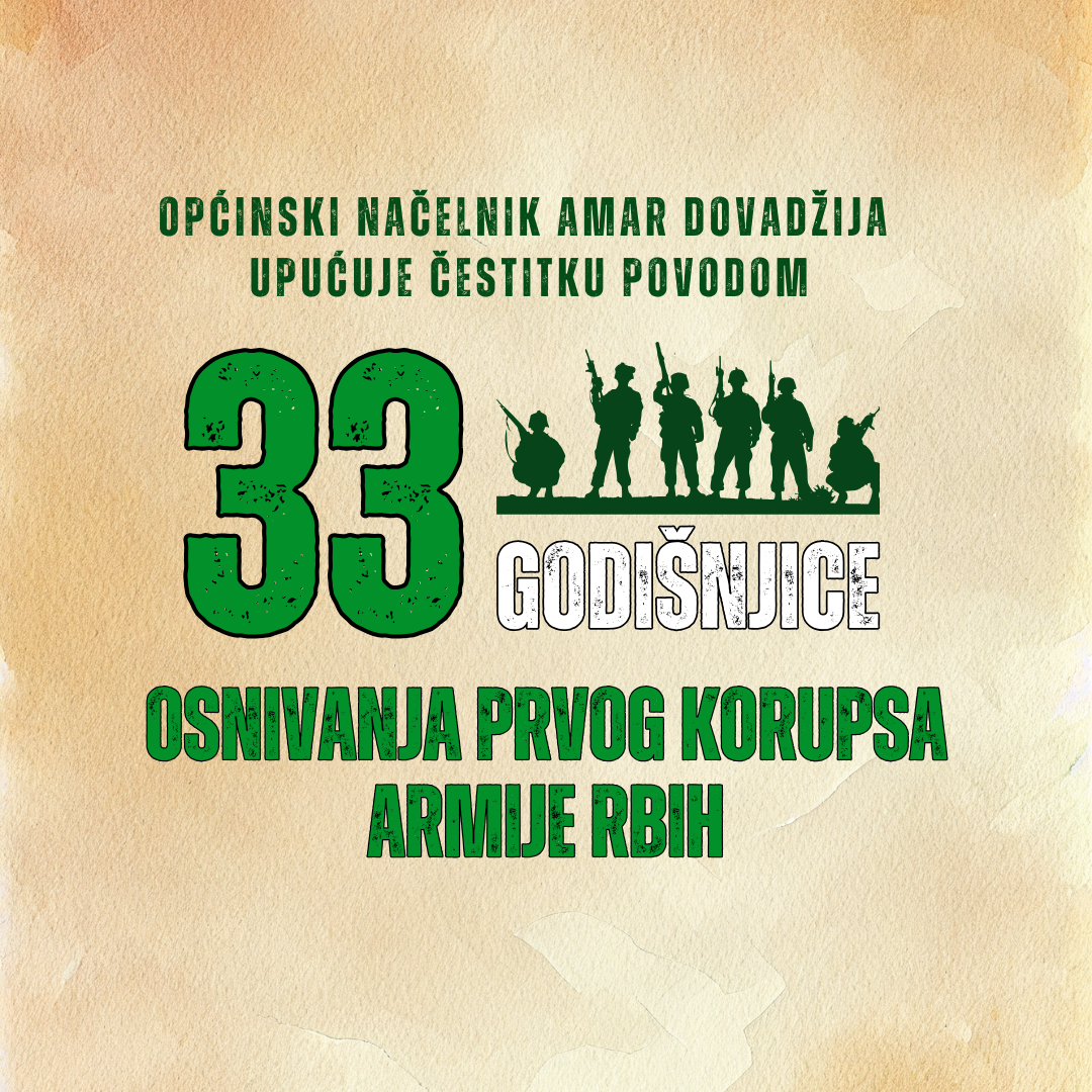 Povodom obilježavanja 33. godišnjice formiranja Prvog korpusa ARBiH, načelnik Općine Ilijaš, Amar Dovadžija, upućuje iskrene čestitke svim bivšim pripadnicima ovog korpusa, porodicama šehida i poginulih boraca, ratnim vojnim invalidima i demobilisanim borcima.
