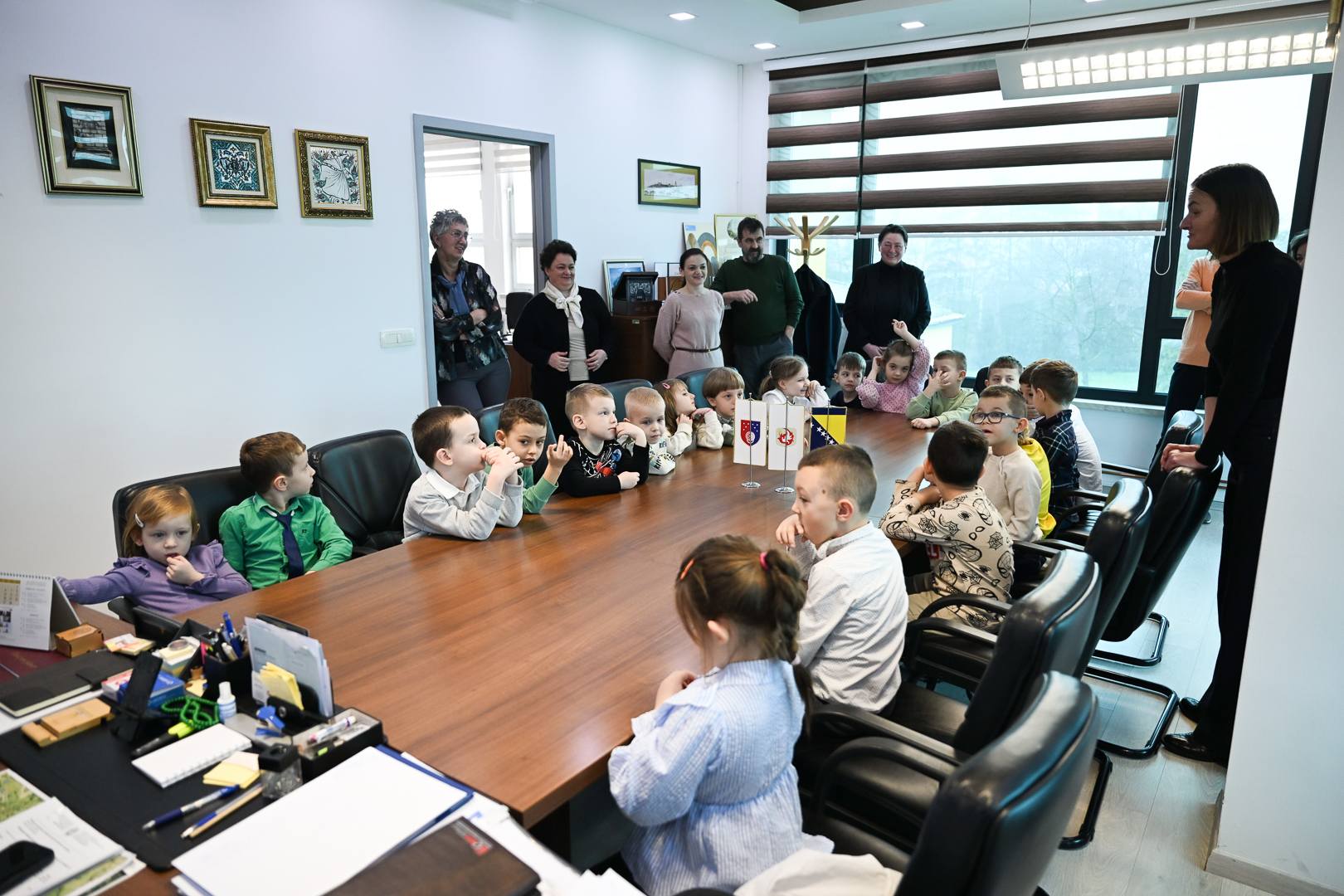 Dječiji osmijesi, radoznali pogledi i iskrena pitanja ispunili su kabinet toplinom i podsjetili sve prisutne na istinske vrijednosti zajedništva, slobode i ljubavi prema domovini. Mališani su načelniku uručili simbolične čestitke i crteže, koje su pripremili sa svojim odgajateljima pokazujući na poseban način koliko su ponosni na svoj grad i svoju domovinu.