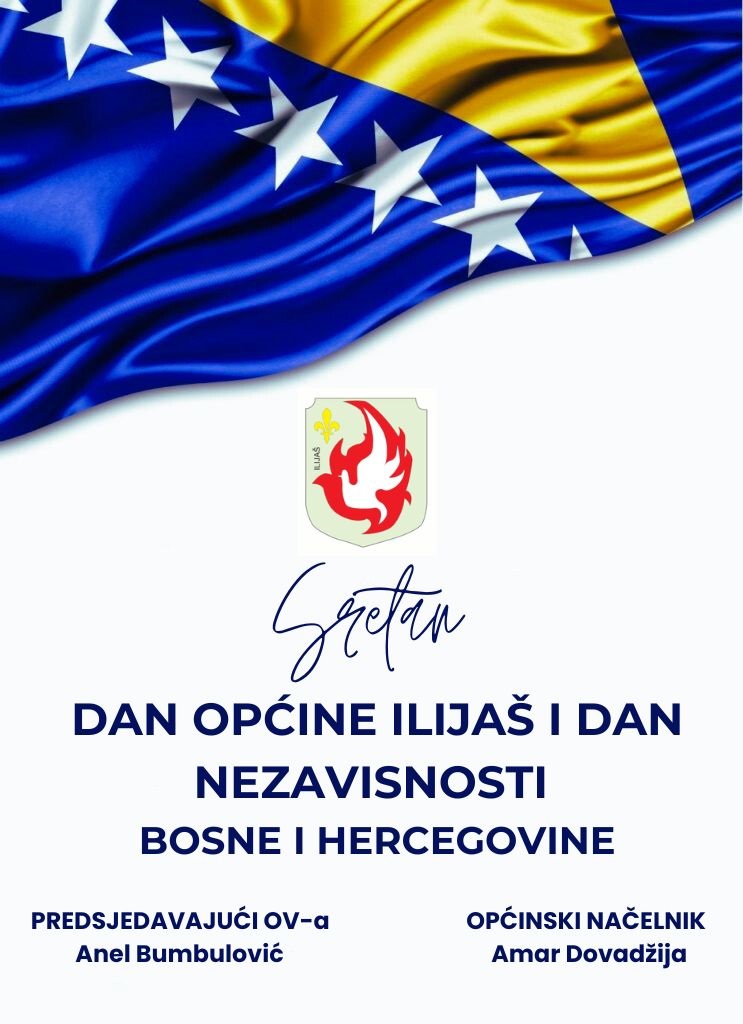 Čestitka načelnika Općine Ilijaš Amara Dovadžije i predsjedavajućeg Općinskog vijeća Ilijaš Anela Bumbulovića povodom Dana nezavisnosti Bosne i Hercegovine i Dana Općine Ilijaš:
