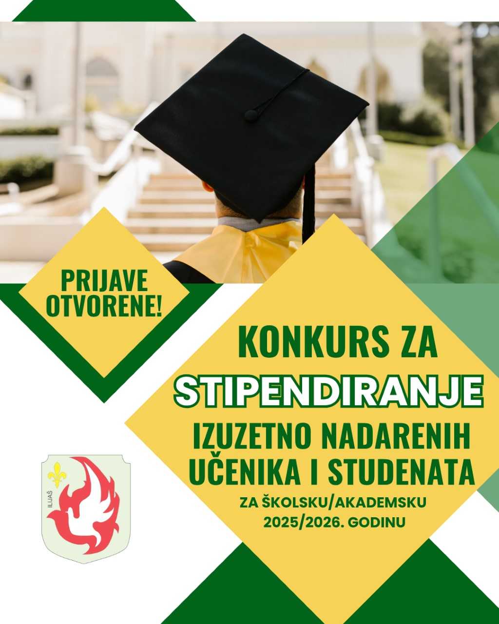 Tekst konkursa kao i ostalu dokumentaciju možete preuzeti: https://ilijas.ba/index.php/javni-pozivi/konkurs-za-stipendiranje-izuzetno-nadarenih-ucenika-i-studenata-u-skolskoj-akademskoj-2025-2026-godini
