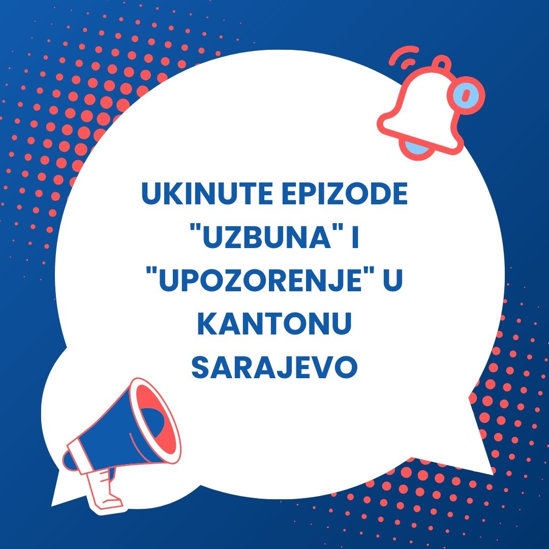 Na prijedlog Ministarstva komunalne privrede, infrastrukture, prostornog uređenja, građenja i zaštite okoliša, Vlada Kantona Sarajevo donijela je Odluku o ukidanju epizode "Uzbuna" koja je od petka bila na snazi na području četiri gradske općine i općine Ilidža, uslijed značajnog poboljšanja kvaliteta zraka. S obzirom na tendenciju pada zagađujućih materija, kao i najavljenih vremenskih prilika za naredni dan koje će dovesti do čišćenja zraka, Ministarstvo je ukinulo i "Upozorenje" na cijelom području Kantona. Time prestaju važiti sve ranije propisane restriktivne mjere.